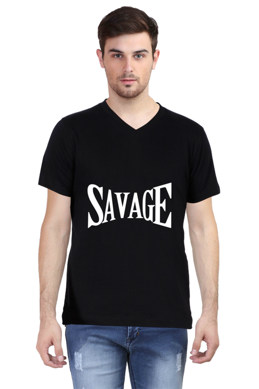 Explore Oasis Men's V Neck Stylish T-Shirt Plain Solid Half Sleeves - Savage