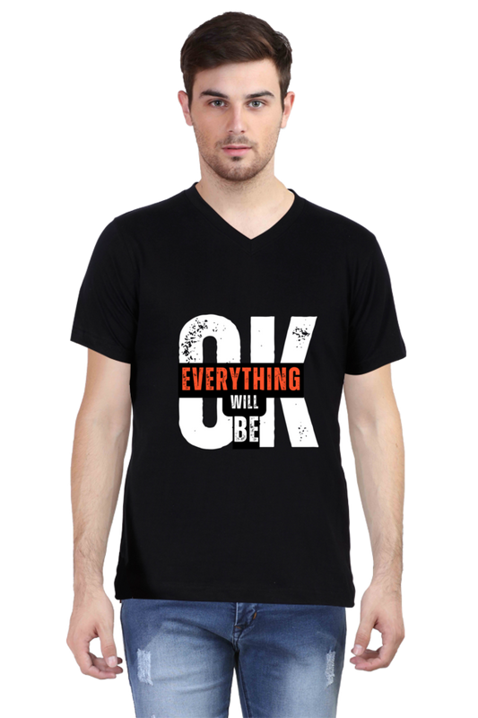 Explore Oasis Men's V Neck Stylish T-Shirt Plain Solid Half Sleeves - Everything Will be ok